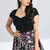 Schwarze Basis mit großem Aufdruck aus verstreuten roten Rosen